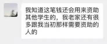 “我知道这笔钱还会用来资助其他学生,我老家还有很多跟我当初那样需要资助的人。”