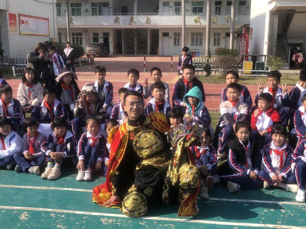 在潮州市潮安区凤塘镇泮洋小学,希望乡村教师计划支教志愿者谢锐炼不仅教数学、英语、体育,还将魔术、川剧变脸等丰富多彩的内容搬进孩子们的课堂。“斜杠青年”谢锐炼发挥自身特长,演戏曲、舞草帽……让课堂妙趣横生。
