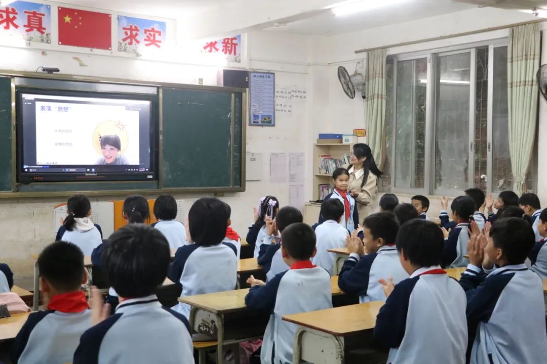 在封川小学的幸福与健康课程中,支教志愿者以颜色启发学生了解自己的性格从而让学生认识自己。在杏花镇中心小学的职业启蒙课中,支教志愿者以演员这个职业为例,告诉学生“不管从事什么职业,第一步就是需要好好学习”。课堂上,老师与学生们互动,学生们积极发言,气氛轻松而热烈。