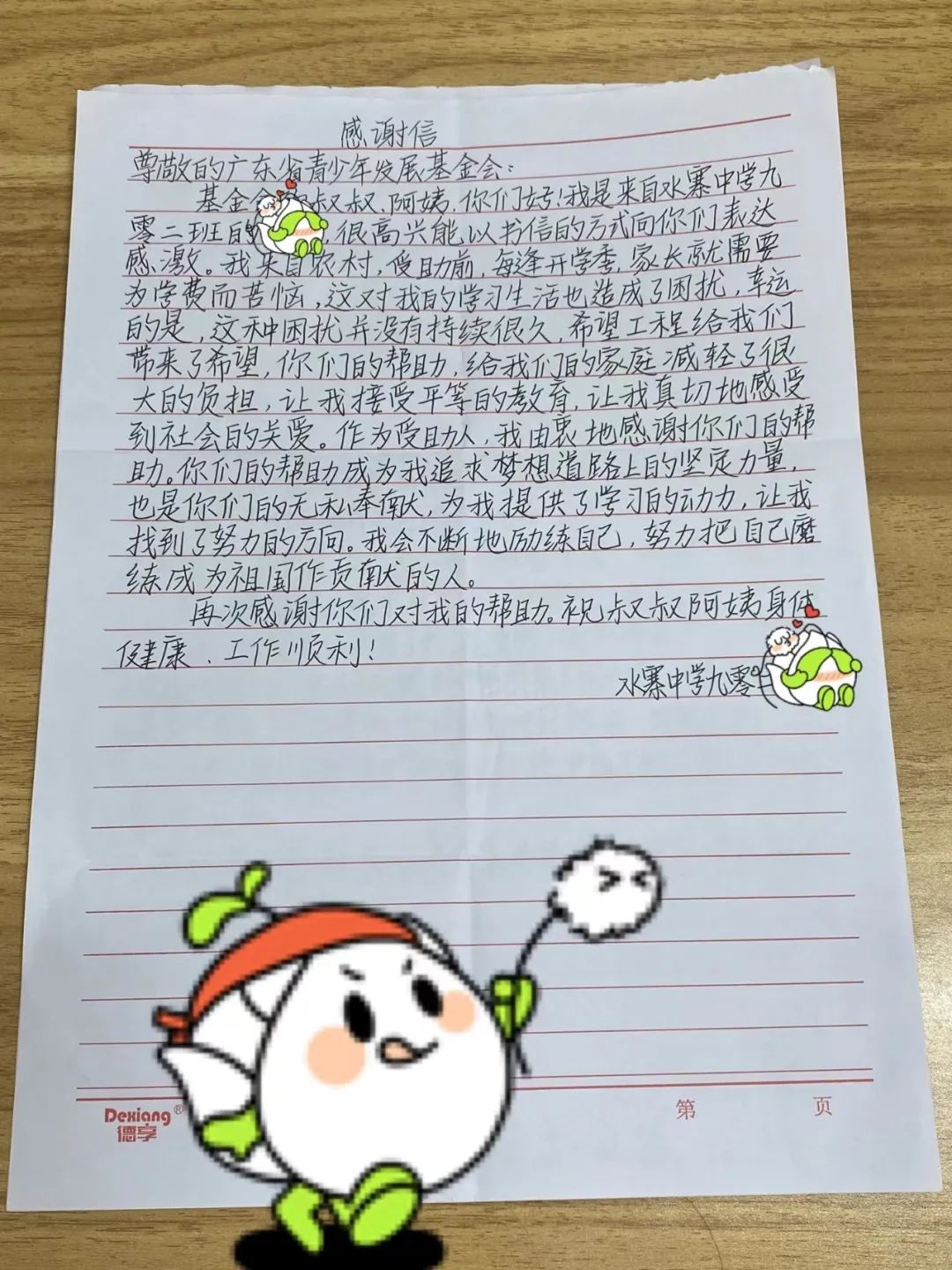 图为收到的感谢信