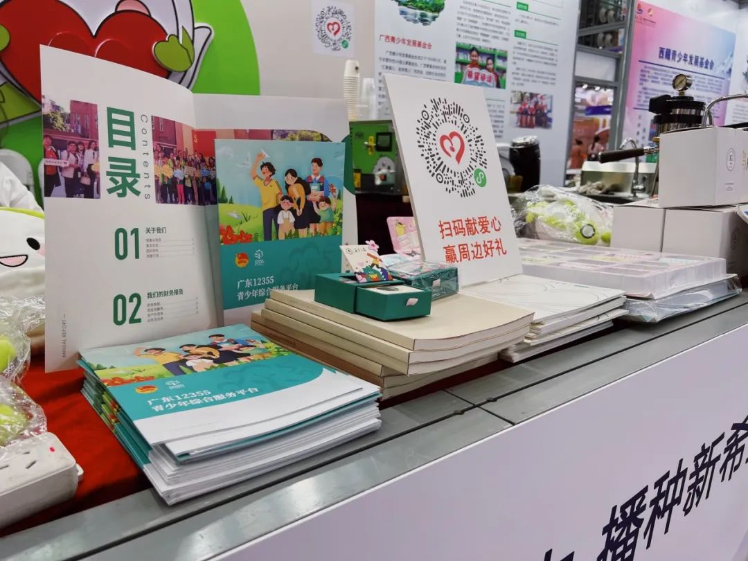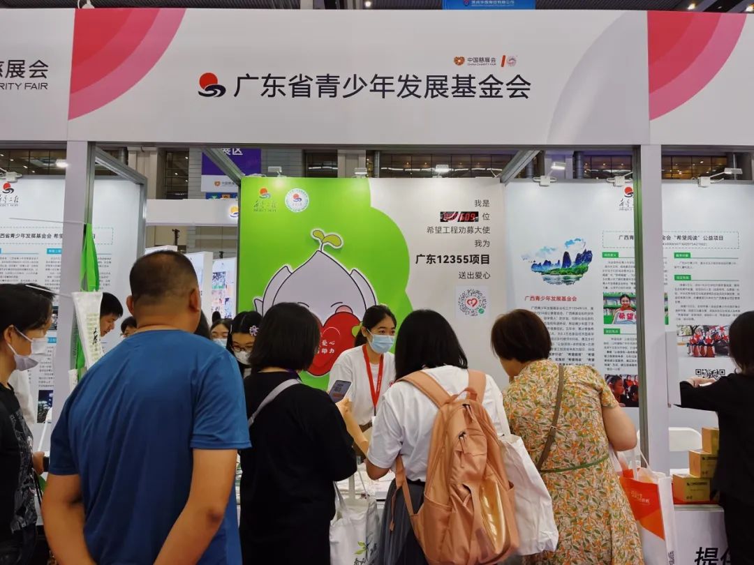 参观者通过图文、现场互动、文创产品义卖等方式多方面地了解广东希望工程近年来公益项目风采成果。摊位上重点宣传推介的广东12355服务重点项目,也吸引了许多来自不同行业、领域的热心公众了解和参与捐赠。