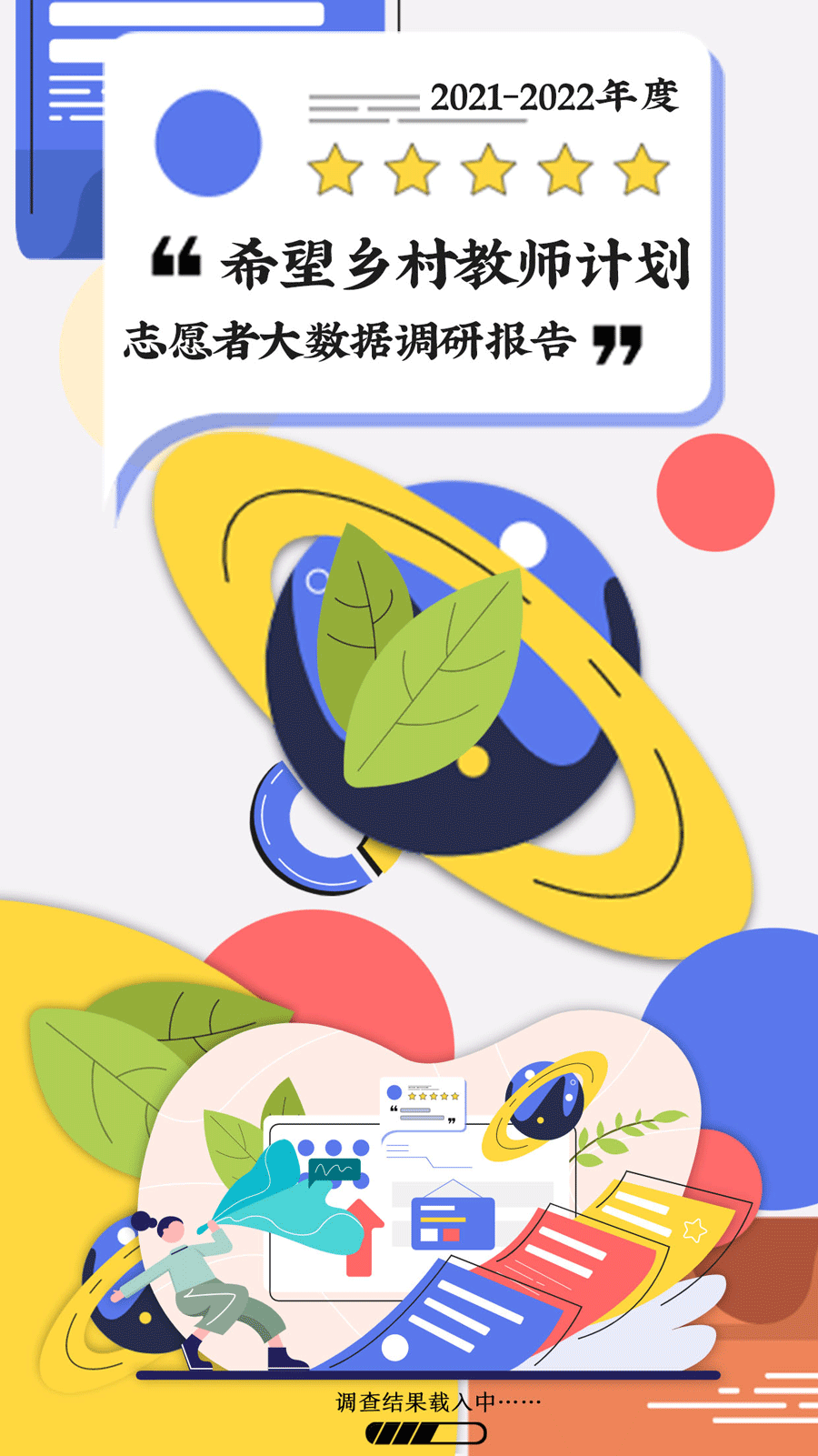 7-10月,我们对2021-2022年 希望乡村教师计划的在岗志愿者 做了一系列的调查问卷和数据收集 一共回收到了1188份问卷 在问卷里我们收到了一些心声 「希望能够跟支教的小伙伴和前辈学到东西, 努力提升自己」 「希望与学生、伙伴共同成长进步」 「因材施教,给自己留下一个深刻的乡教体验」 「给孩子带去知识和快乐,提升教学能力, 认识志同道合的朋友」 如果你和支教伙伴有相似的期待 或者你在参加乡教的边缘跃跃欲试 希望这份调查报告可以成为你们沟通的契机 欢迎你收看本期 乐道派HPY 的详细调查报告 点击下方【点我开车】查看报告 请旋转手机 展开一段旅程 点我开车 到这里 《2021-2022年度 乡教计划志愿者大数据调查报告》 已经全部分享完毕了 如果你有想在支教旅途中深入交流的小伙伴 想和同一天生日、同一个星座 同一款支教宣言的朋友 一起玩耍 现在转发给TA,这是最好的机会了 如果你还没有加入希望乡村教师计划 还在门外拿着”想去“的号码牌犹豫徘徊的 我们想对每个处于选择当中的人说 ——没有关系 欢迎分享给你的好友及家人 让支教之旅从此刻开始 乡教的世界很大 在路上总能找到志同道合的人 如果你也想为乡村教育助力 欢迎扫码成为 希望乡村教师计划·月捐人
