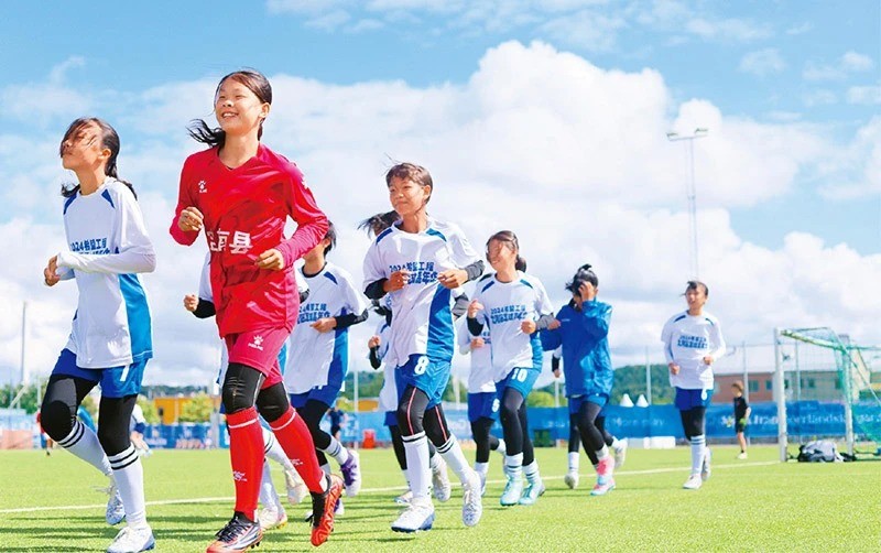 2024年7月19日,在“哥德堡杯”世界青少年足球锦标赛上,中国希望工程代表队女足队伍——江西省赣州市定南一小女足队荣获季军。图为定南一小女足队部分队员。